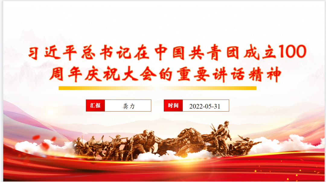 会上,与会人员首先认真学习了习近平总书记在庆祝中国共产主义青年团成立100周年大会上的重要讲话,习近平总书记的重要讲话深刻总结了中国共青团一百年来形成的宝贵经验,对未来共青团进一步开拓创新、再建新功提出了明确要求,为当代青年面向未来、健康成长指明了方向,寄托了党和国家对青年一代的深切关怀和殷切期望,意蕴深厚、催人奋进。