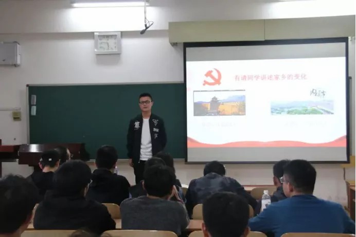 2019级自动化二班团支部的韩金庭同学为大家讲述了党史故事,带领大家回顾了新中国艰苦的奋斗历程;孙浩同学向老师同学们详细描述了自己家乡河北张家口在党的带领下所发生的翻天覆地的变化;张新宇同学讲述了家乡包头市始终不忘初心跟党走,逐渐从一个不知名的小城市成长为现在的内蒙古第一大工业城市的历程。