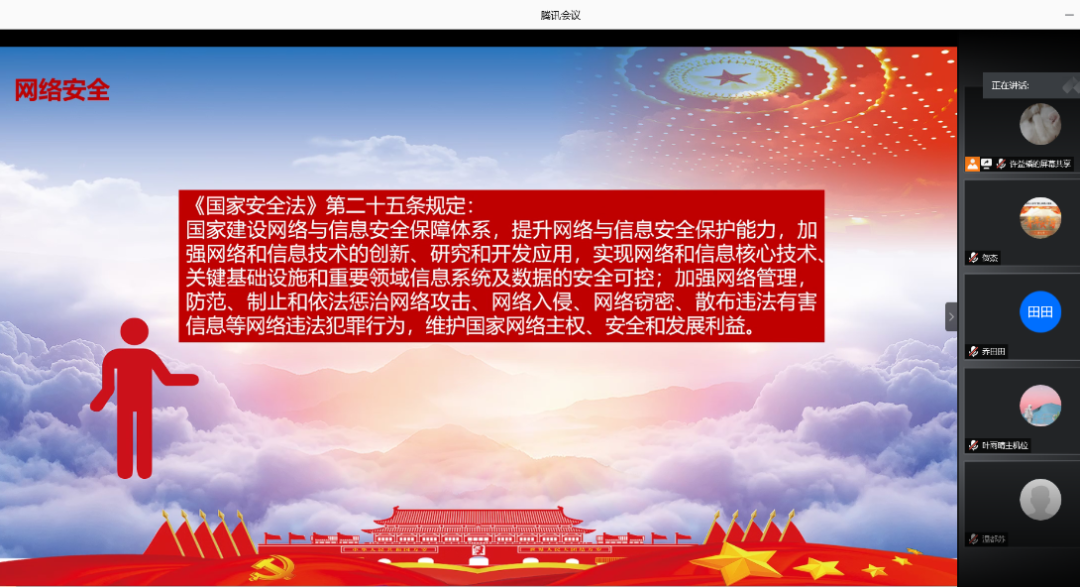 3月,2017级各团支部开展了“维护国家安全,守护美好家园”主题团日活动,通过线上线下等方式,带领团员青年学习了《中华人民共和国国家安全法》。