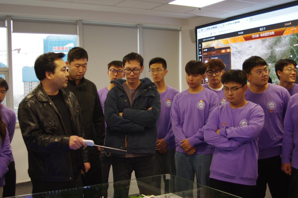 在呼和浩特科创中心,内蒙古科比特航空科技有限公司负责人向同学们介绍了公司的基本概况,现场演示了公司产品在智慧矿山、智慧畜牧业、智慧城市等领域的场景应用和不同型号工业无人机在目标侦察、作战筹划、联合救援等方面的应用,展示了空·天地一体化管控系统、智能巡检云平台的实时效果。同学们饶有兴趣的围绕无人机操作原理、内部构造、应用场景等感兴趣的问题向工作人员进行了现场交流。