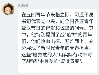 开班仪式结束后,青马班全体成员一起学习习近平总书记五四寄语精神并交流感受。