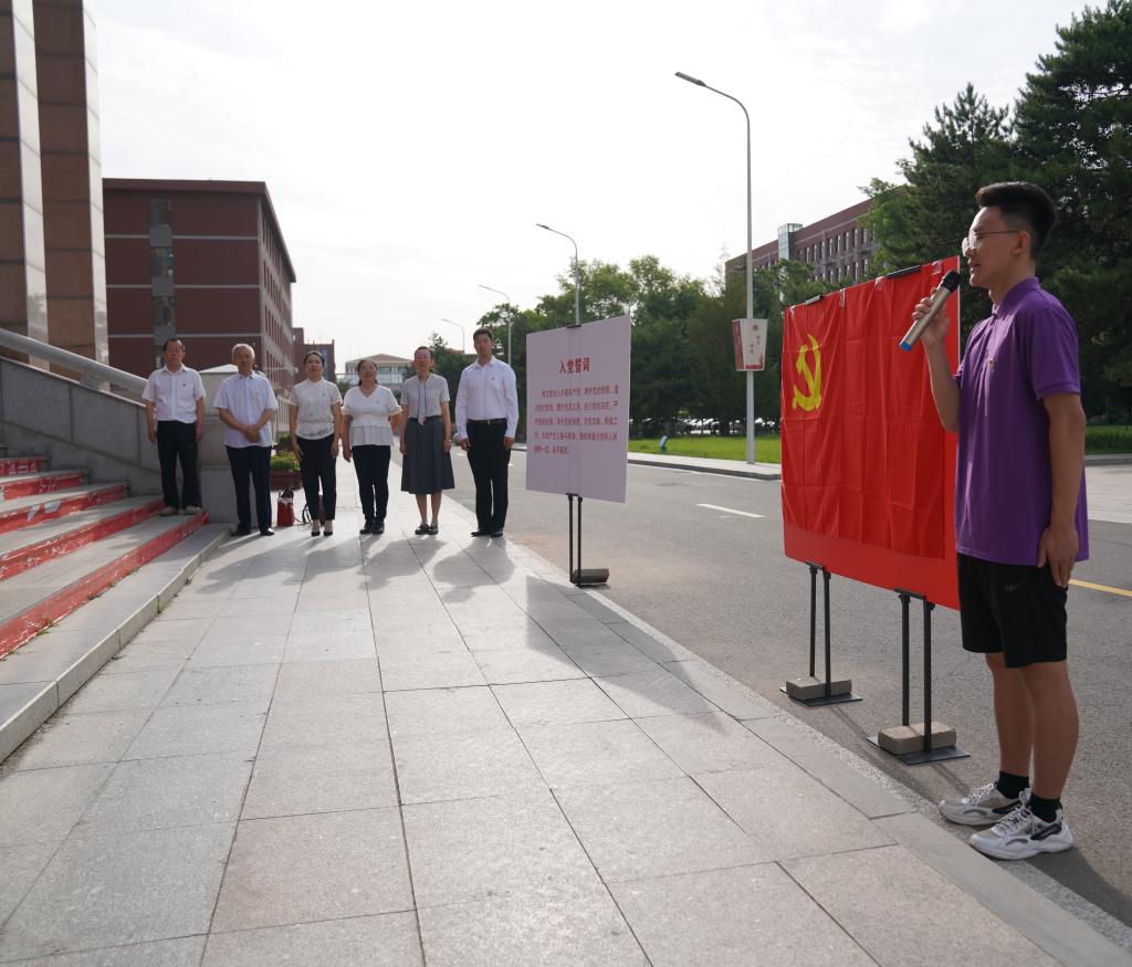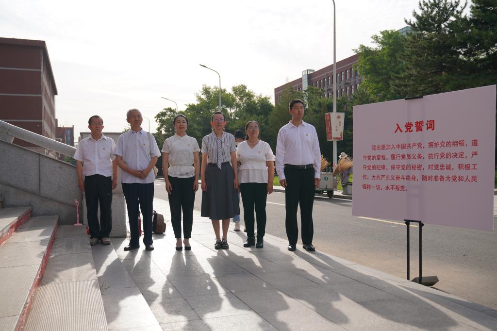 为深入开展学习贯彻习近平新时代中国特色社会主义思想主题教育,纪念中国共产党成立102周年,7月1日上午7:30,tyc86太阳集团在卓越楼前举行 “党的生日 我宣誓”新党员入党宣誓暨重温入党誓词活动。tyc86太阳集团党委书记萨奇尔,离退休教工党员刘跃平、赵子先老师,在职教工党支部书记雷雪梅,本科生党支部书记吴岩,研究生第一党支部书记白云波,新发展党员和部分党员代表参加了活动,本科生党员全睿哲主持。