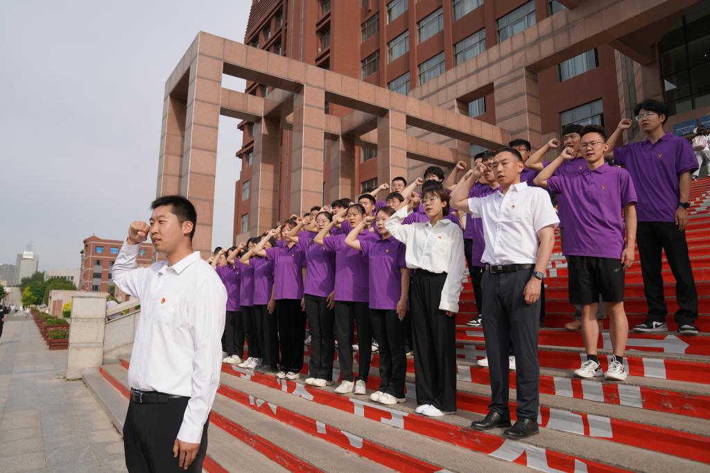 全体党员在研究生第一党支部书记白云波的带领下,面向鲜红的中国共产党党旗,举起右拳,庄严宣誓。铿锵有力的誓言,表达了对党的无限忠诚和听党话、感党恩、跟党走的坚定决心。