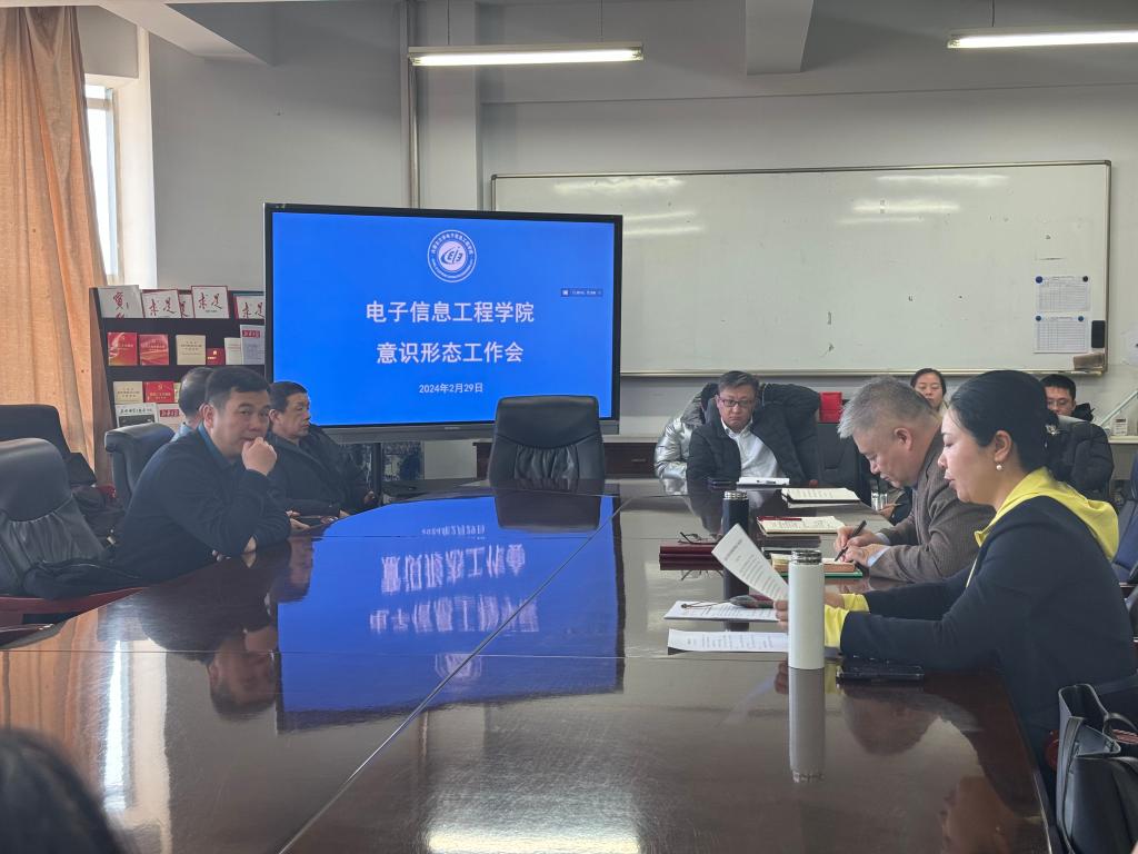 2024年2月29日,tyc86太阳集团在卓越楼0617会议室召开全院意识形态工作会议,学院党委书记萨奇尔主持,全院在校教职工参加会议。