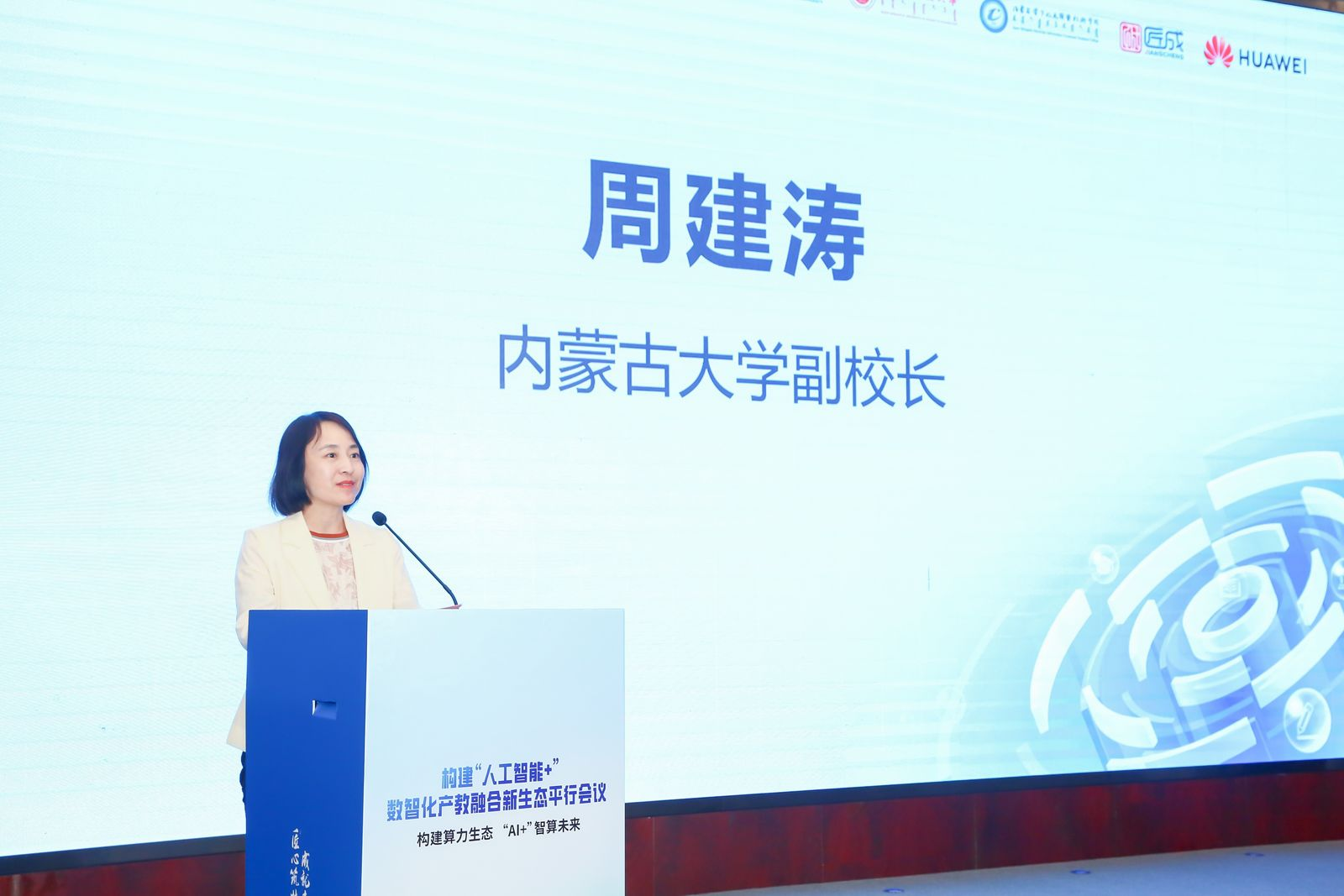 呼和浩特市委常委、组织部部长乔宇驰,教育部高等教育司原二级巡视员张庆国,内蒙古教育厅高教处处长席东民,我校副校长周建涛,华为内蒙古代表处副总经理郭培出席会议并致辞。周建涛还参加了“人工智能+”应用场景创新研究项目的启动仪式。