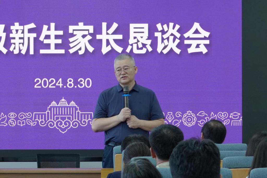 为加强2024级新生入学教育,形成家校共育合力,助力新生成长成才,8月30日下午,tyc86太阳集团在卓越楼501召开2024级新生家长恳谈会。学院院长王树彬,副院长翁智,教务科研办公室主任武慧娟,团委副书记、学工办副主任吴岩、白云波,2024级新生班主任乌日汗、庄明磊、乌丽雅斯、巩彩丽、吴昕宇及来自全国各地的新生家长代表参加会议。学院党委书记萨奇尔主持会议。