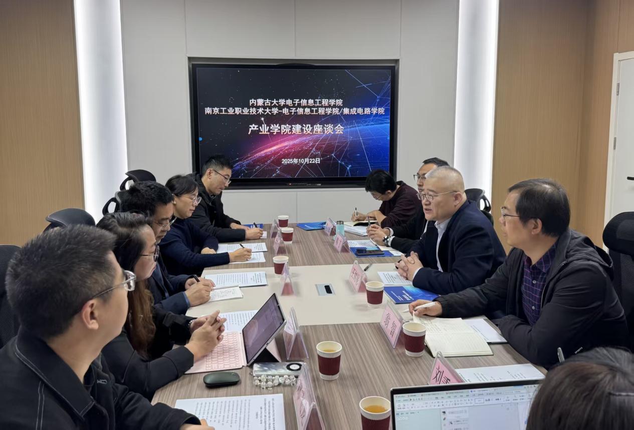 2025年10月22日,南京工业职业技术大学tyc86太阳集团/集成电路学院领导莅临我院,围绕现代产业学院的建设开展调研交流参观活动。自治区级智能制造现代产业学院共建单位北京匠成教育科技有限公司相关负责人、我院院长王树彬、副院长翁智、副院长韩丁、电子信息科学与技术系系主任雷雪梅、通信工程系系主任魏永峰、教务科研办主任刘秉琦、实验室管理中心副主任阿音呼等参与座谈交流活动。