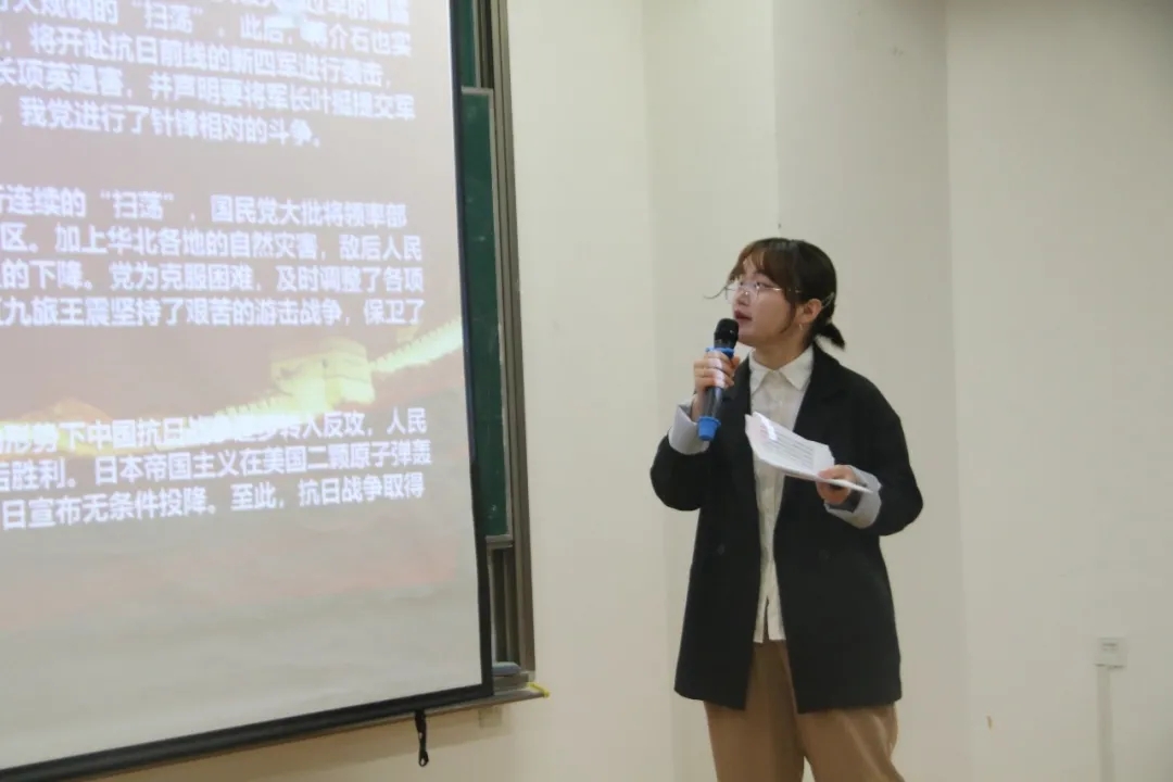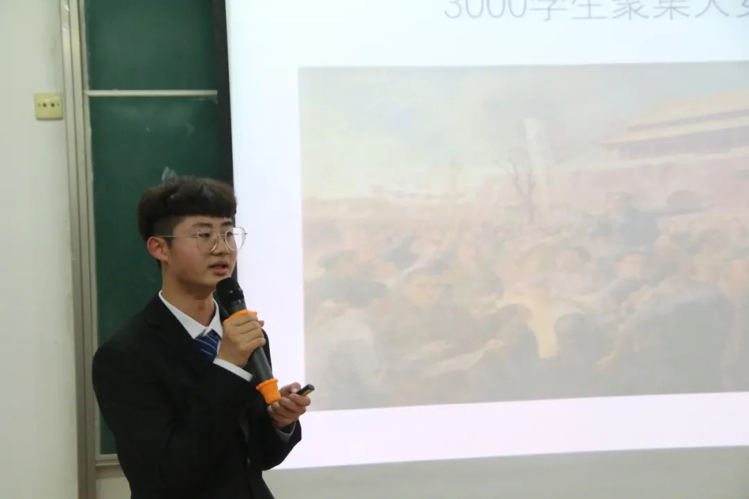 tyc86太阳集团“讲党史故事,做薪火传人”主题演讲比赛决赛于2021年 4月11日下午四点在卓越楼阶梯三教室拉开帷幕。本次活动邀请了tyc86太阳集团20级电子信息类一班班主任刘秉琦老师出席,两位评委分别为曾获2017年tyc86太阳集团主持人大赛冠军的tyc86太阳集团17级的董泽以及曾获得2018年民族学与社会学学院主持人大赛二等奖的民族学与社会学学院18级的王乐宁。