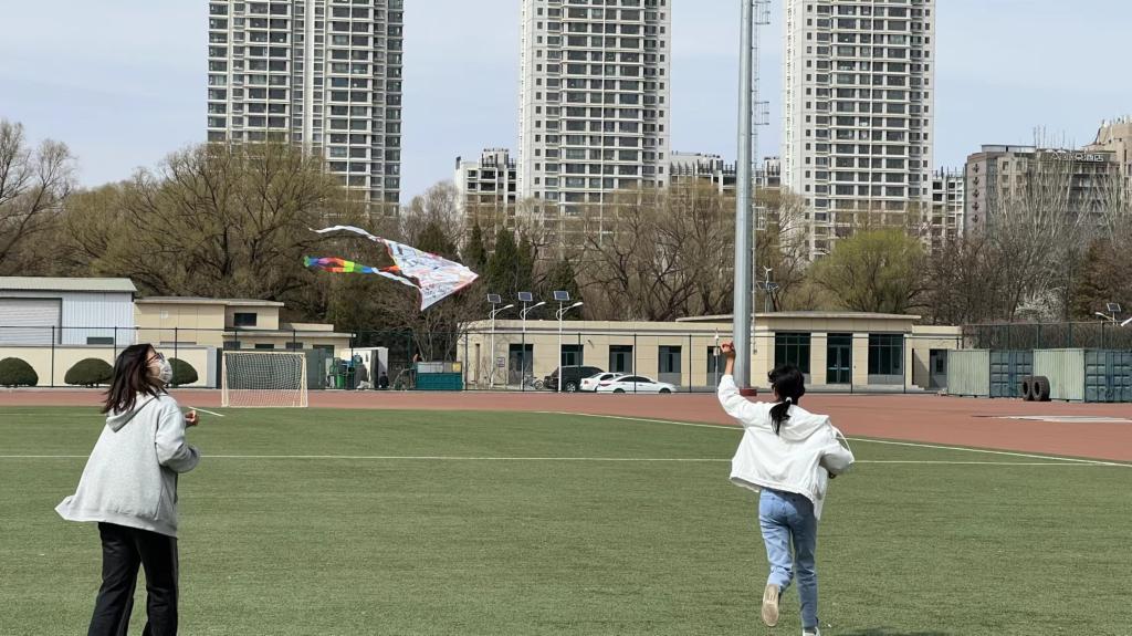 活动最后,同学们追逐着春风的脚步肆意奔跑,将一个个象征团结与友谊的风筝送上蓝天,操场上空飞舞着各色各样的风筝,将蔚蓝的天幕妆点得愈发生动美丽。