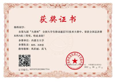 近日,历时5个月的第九届“大唐杯”全国大学生移动通信5G技术大赛全国总决赛在北京落下帷幕。太阳集团“创新之家”本科生共斩获全国总决赛一等奖1项、二等奖2项、三等奖2项、优秀奖1项。这是我校在历届全国大学生移动通信5G技术大赛中取得的最好成绩。