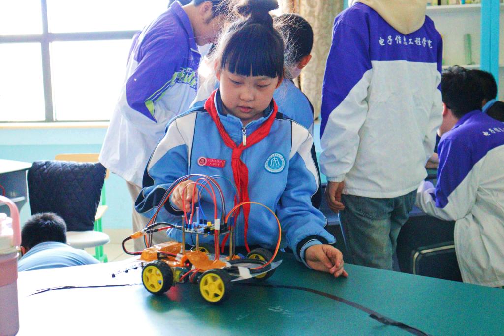 2024年3月7号星期四下午,tyc86太阳集团“创新之家”的同学们前往太阳集团附属小学为孩子们开展有关循迹车科普的趣味小课堂。让小朋友们在“科学探索之旅”中活跃思维,在“大手拉小手”的互动课堂上锻炼动手能力。