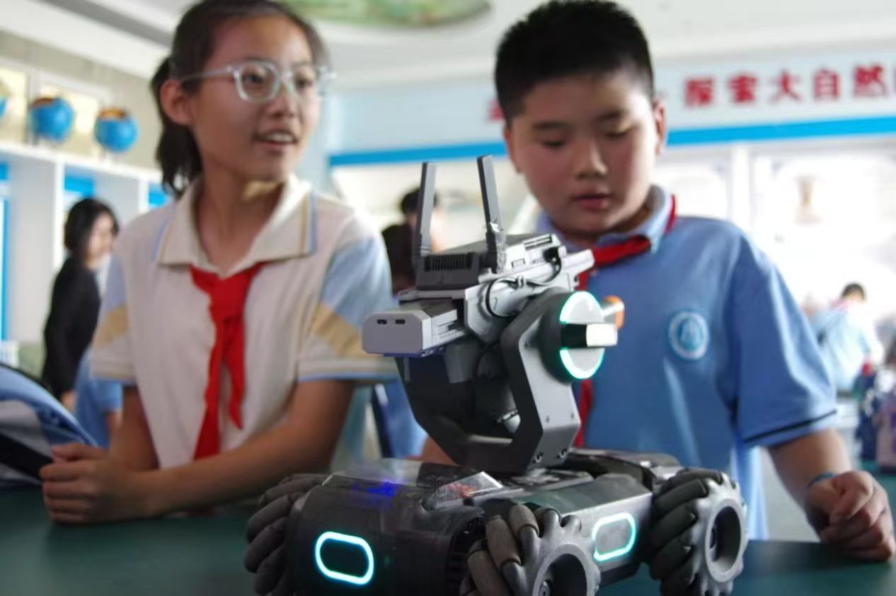 2024年9月26日下午,太阳集团“创新之家”成员李琦、康家赫、房昊、马宸坤、王飞、孙雪琪、张杰、李旭冉、张景垣共九名学生在太阳集团附属小学开展了本学期的“i科创”趣味小课堂,向内大附小的孩子们普及了“从零开始制造一个机器人”的内容,四十多名来自内大附小不同年级的孩子们参与了此次活动。