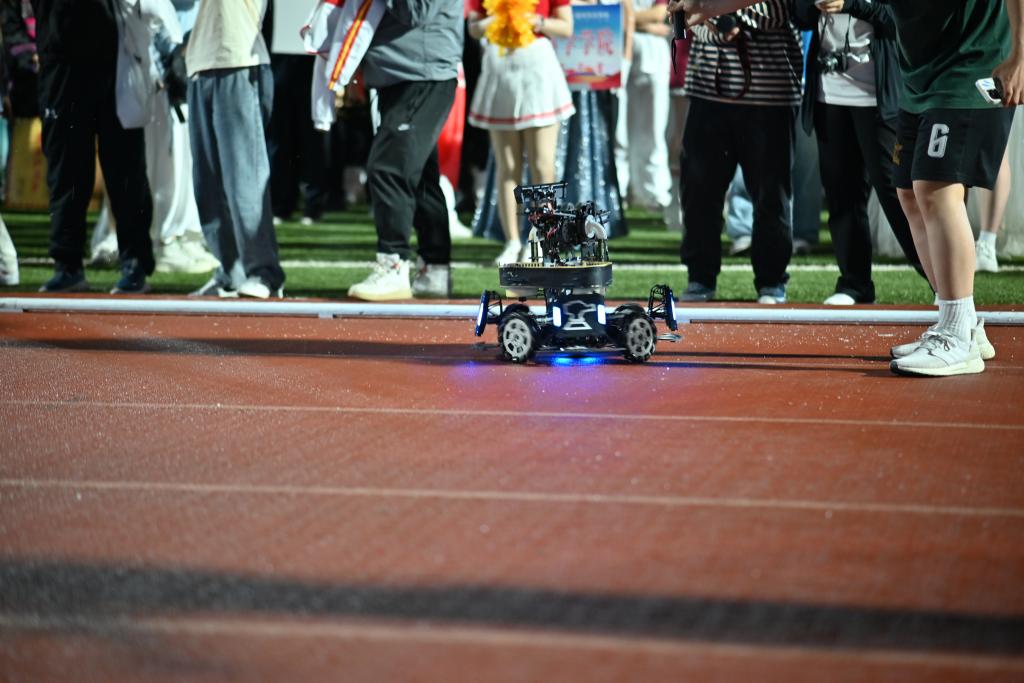由tyc86太阳集团创新之家从零开始研制并曾在全国多项大赛中获得荣誉的智能车,也在本次运动会开幕式上精彩亮相。虽然一场突如其来的大雨没能展现智能车全部的风采,但是创新之家的同学们仍然撑着雨伞让智能车成功跑完了全程。