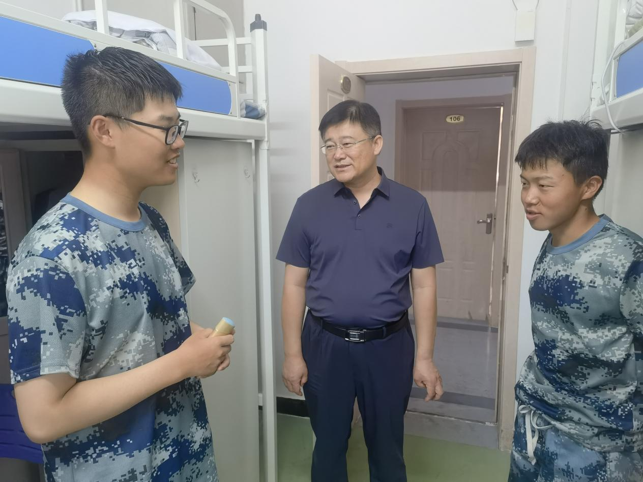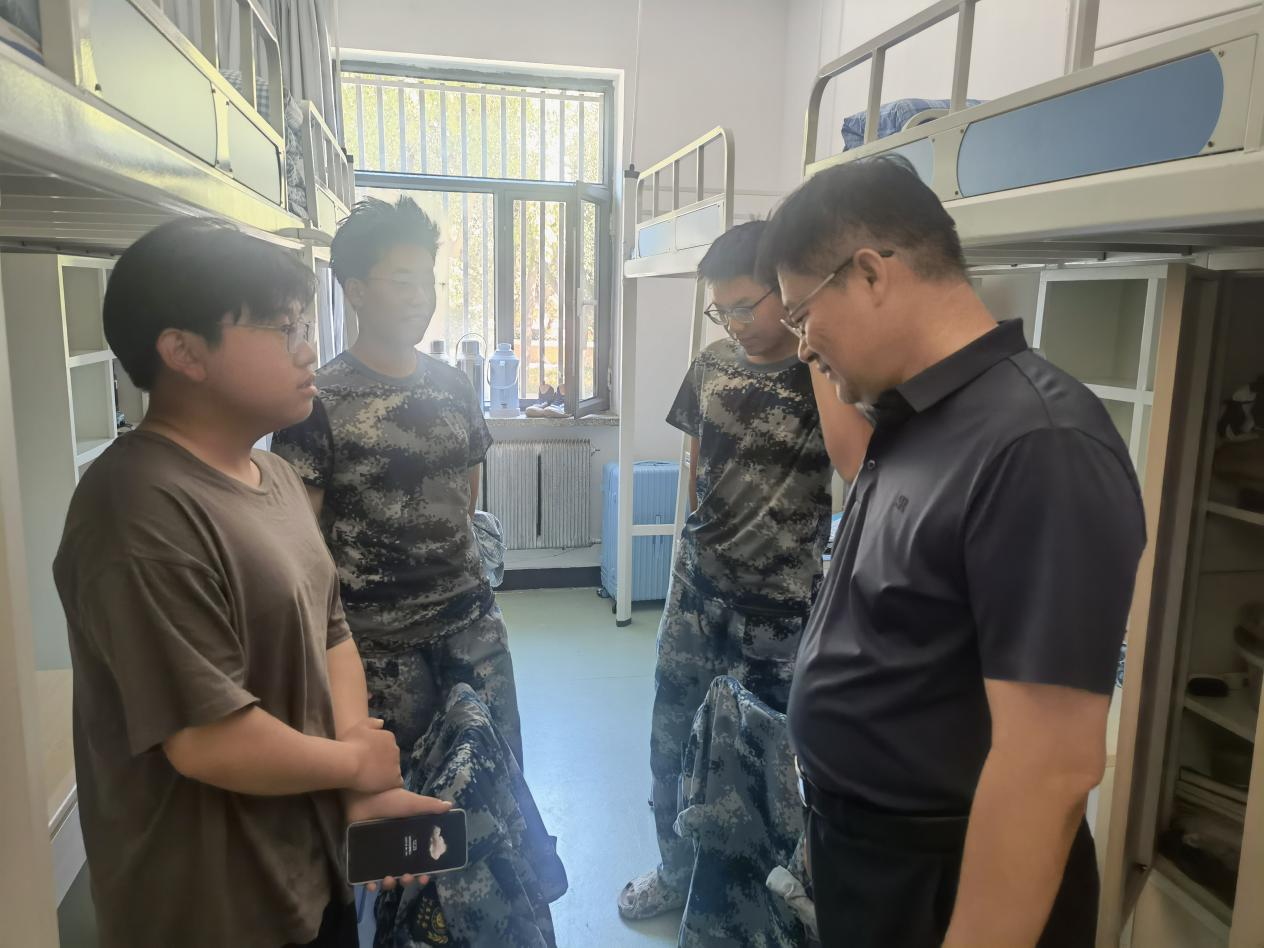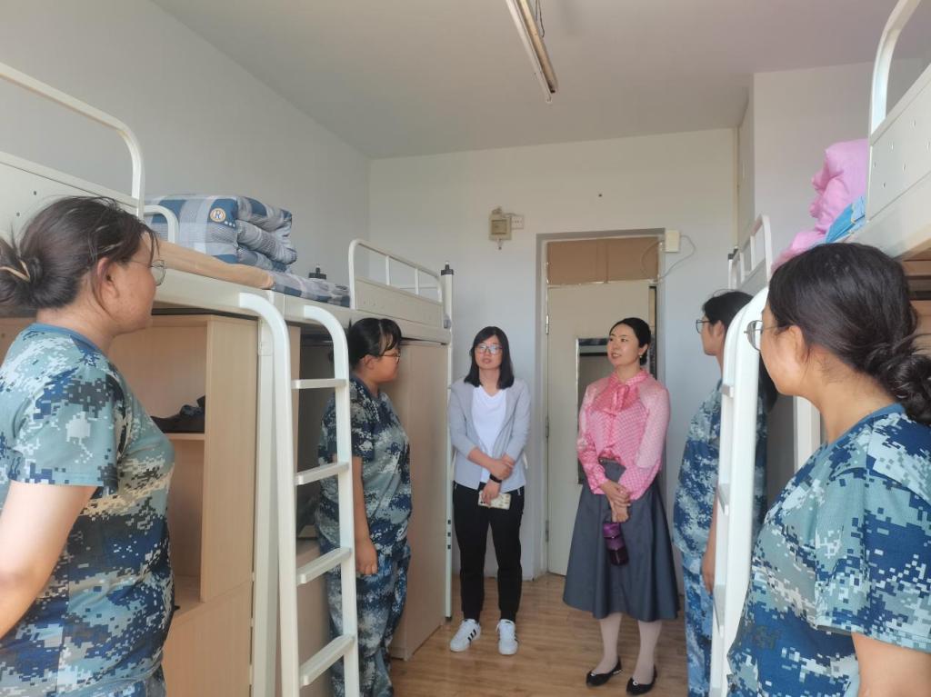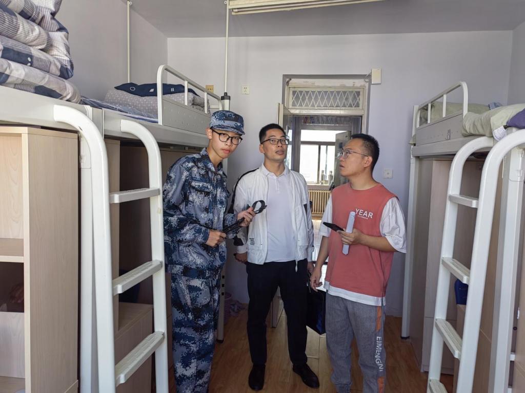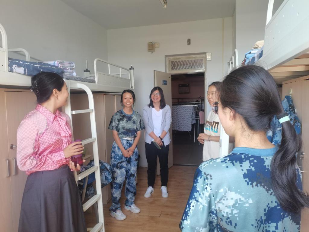 学院教师深入到学生宿舍中,向学生们表达了学院的关心与问候,亲切询问同学们入学以来的生活情况以及在军训期间身体健康状况,同时向学生强调了宿舍安全问题,提醒大家养成良好的生活作息,以更加积极向上的精神面貌,完成军事训练,迎接新学期的生活。