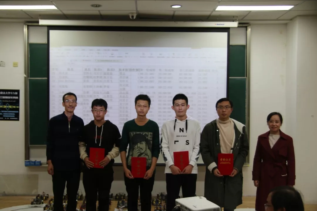 比赛分为三轮,取最好的成绩进行评选,比赛进行中,每一场的精彩角逐都激动人心,现场气氛十分热烈,各队队员都充满了热情,争取使他们的成果发挥到最好。此次竞赛的一等奖有5队,二等奖有10队,冠军是萤火虫队,亚军是竞逐队,季军是OldDriver队,获得最佳车模奖的是二号队,获得最佳学长学姐奖的有高志强学长,米亚杰学长,何东昌学长。