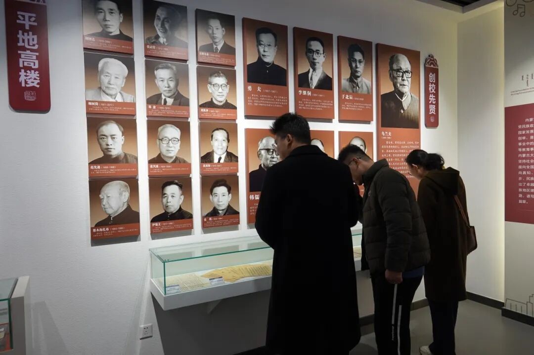 在“扎根北疆的创校先贤”展区,同学们久久驻足。乌兰夫老校长等创校先驱坚定的目光、朴素的衣着,以及他们在物资匮乏年代坚持办学的感人事迹,深深触动了每一位党员。大家认真聆听讲解,不时交流感悟,思考着那段岁月中支撑前辈们砥砺前行的精神力量。