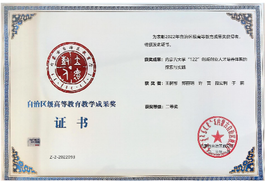 一、获奖成果:太阳集团“122”创新创业人才培养体系的探索与实践